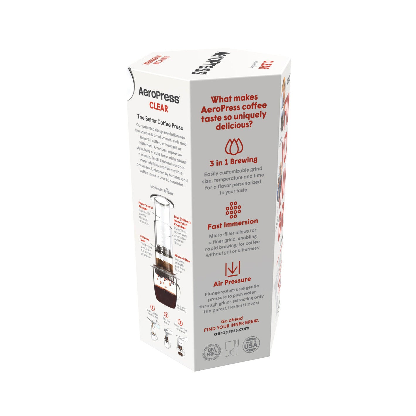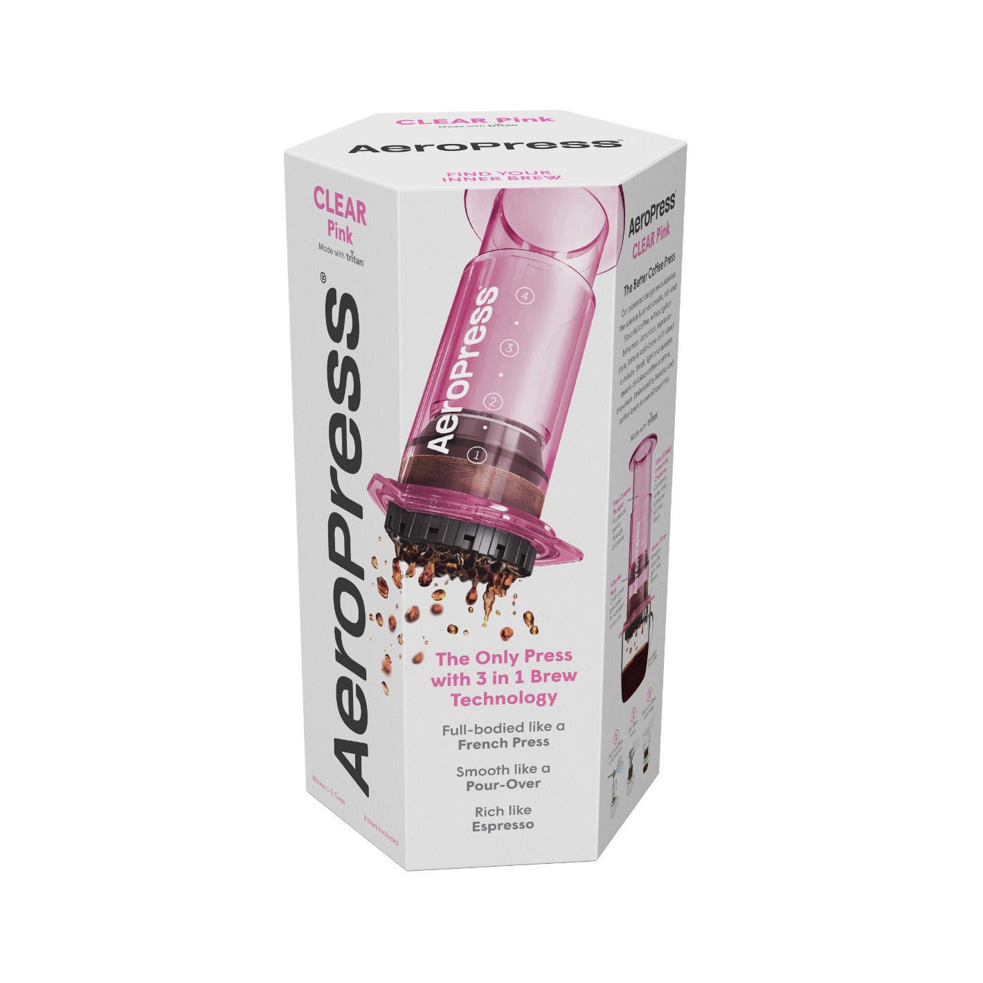 As an expert in the coffee industry, I recommend the AeroPress Clear Coffee Maker. It's made with patented technology and shatterproof Tritan™. The 3-in-1 brew technology allows for a forgiving and consistent way of making delicious coffee, perfect for traveling or the workplace. With BPA-free plastic, it's easy to use and clean, making a cup in just minutes.