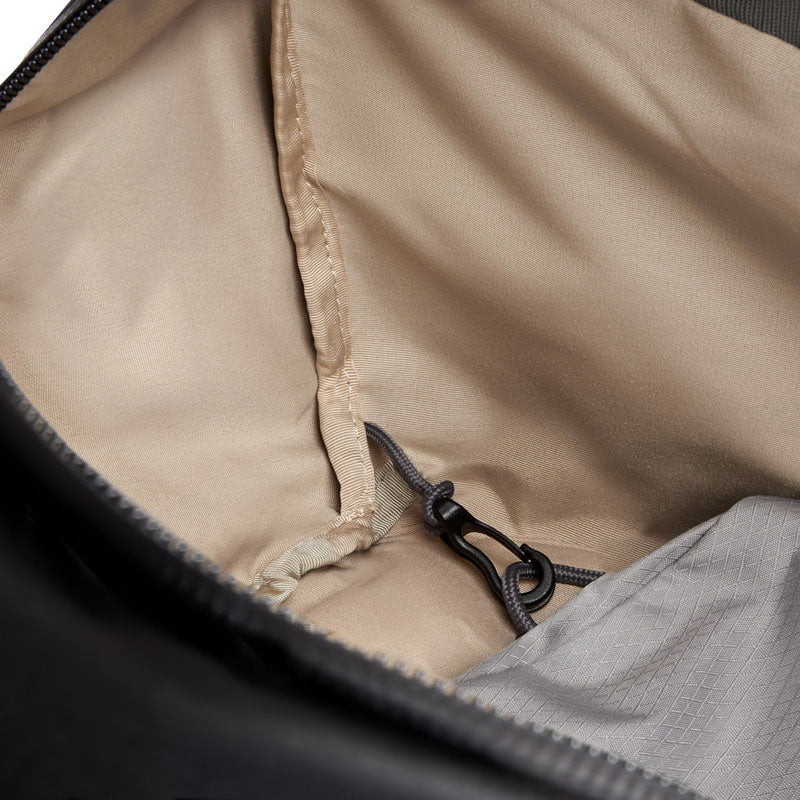 - Lockable main zipper with easy-grab pull cords