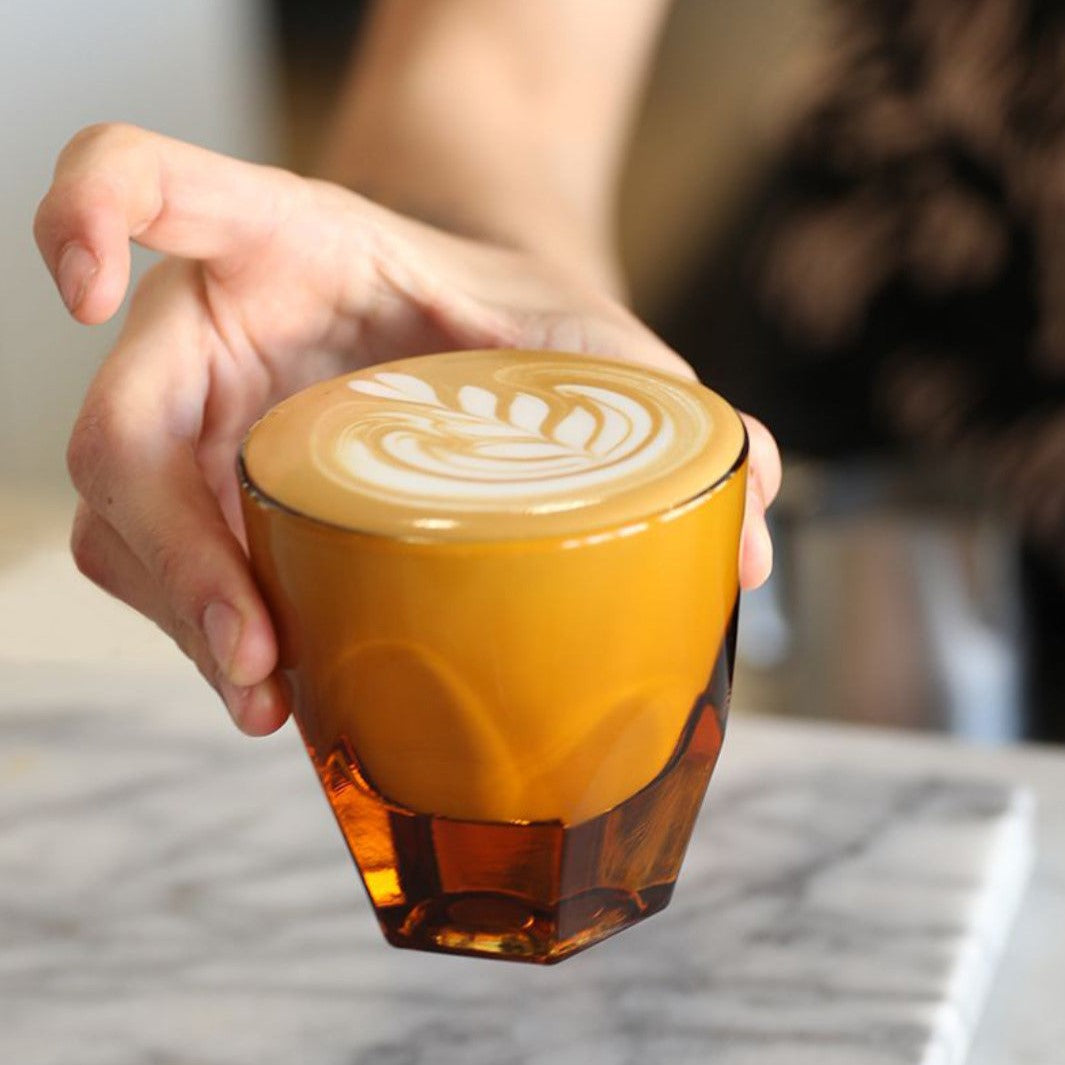 Enhance your coffee experience with the notNeutral VERO Cappuccino Glass. Its modern design and exaggerated facets provide a comfortable grip, while the interior curve allows for beautiful latte art. This versatile 6oz glass is also perfect for an evening Old Fashioned. Elevate your beverages with style and ease.