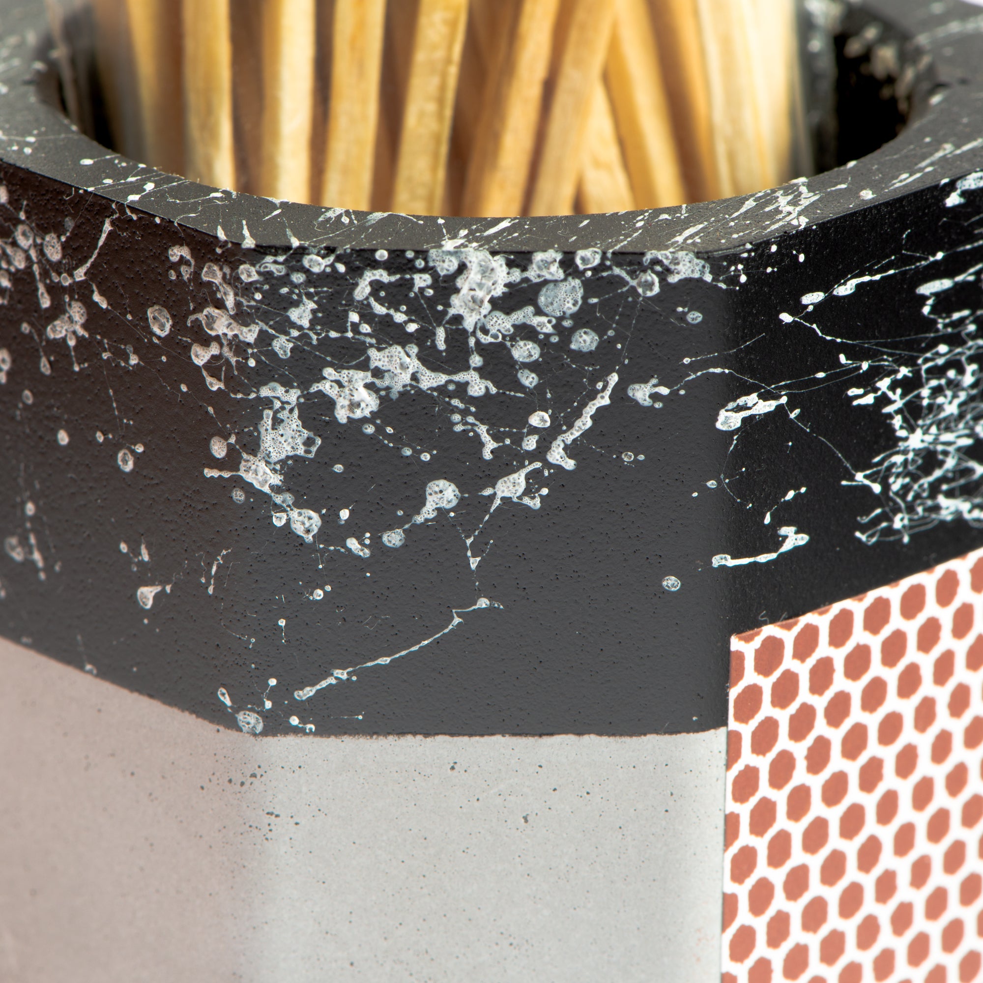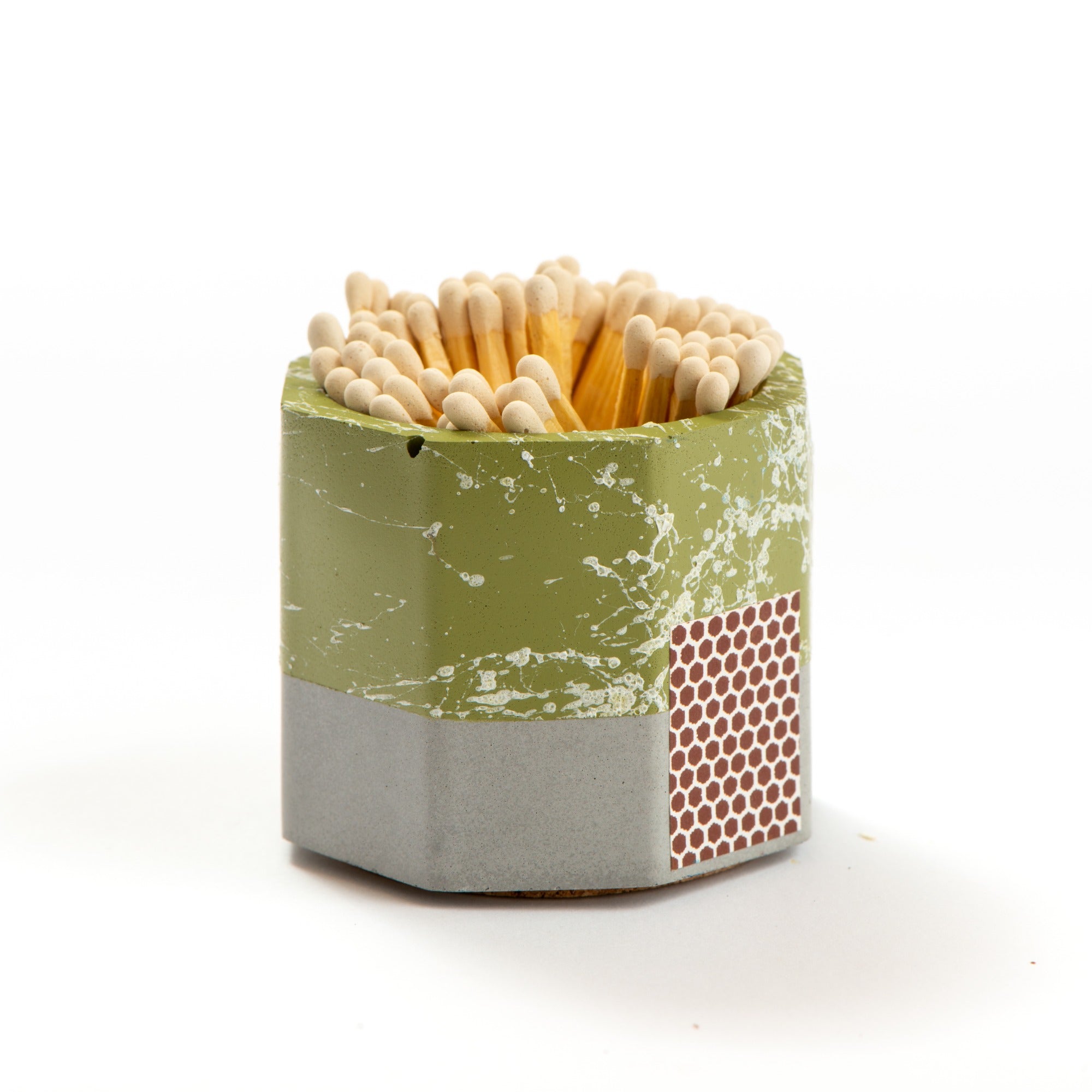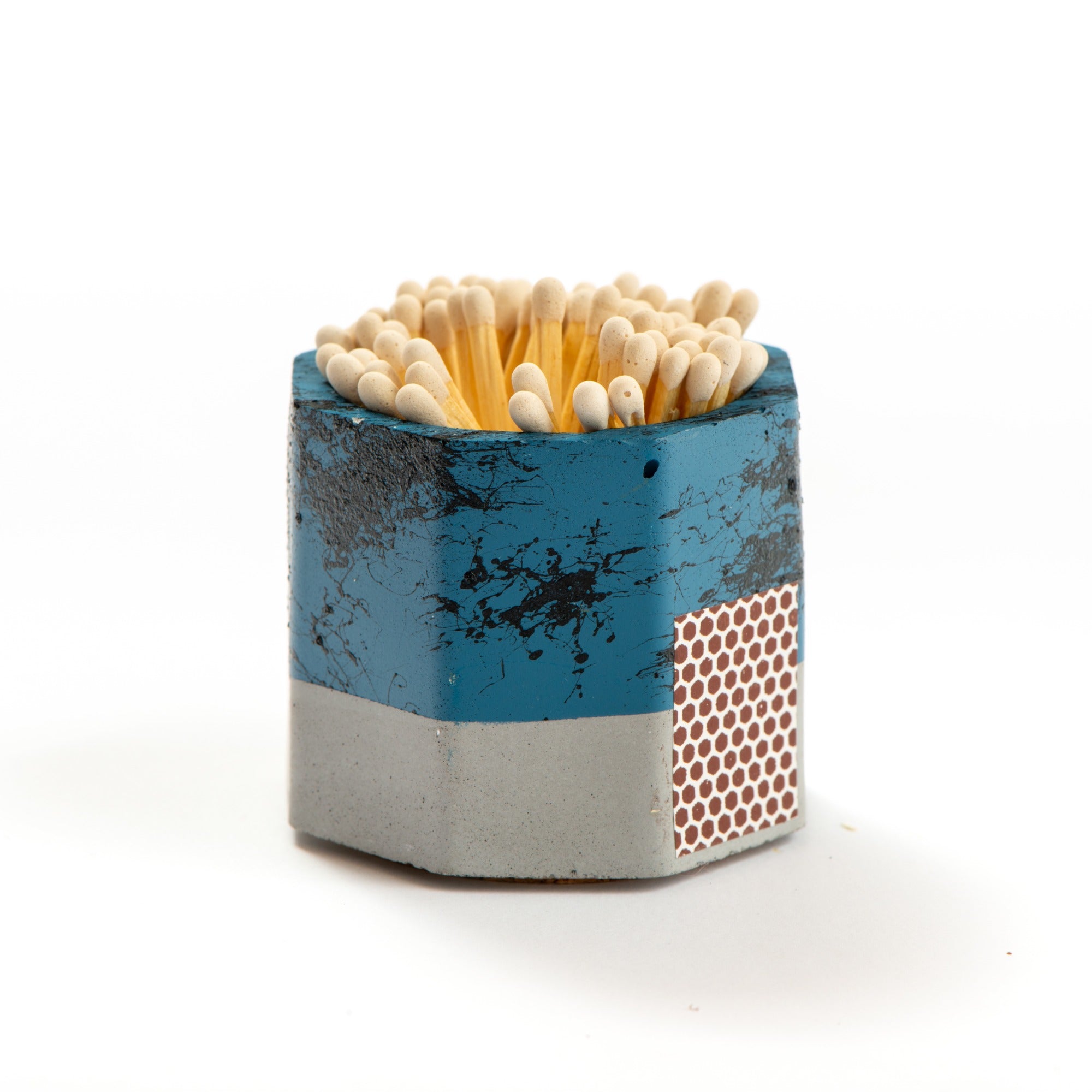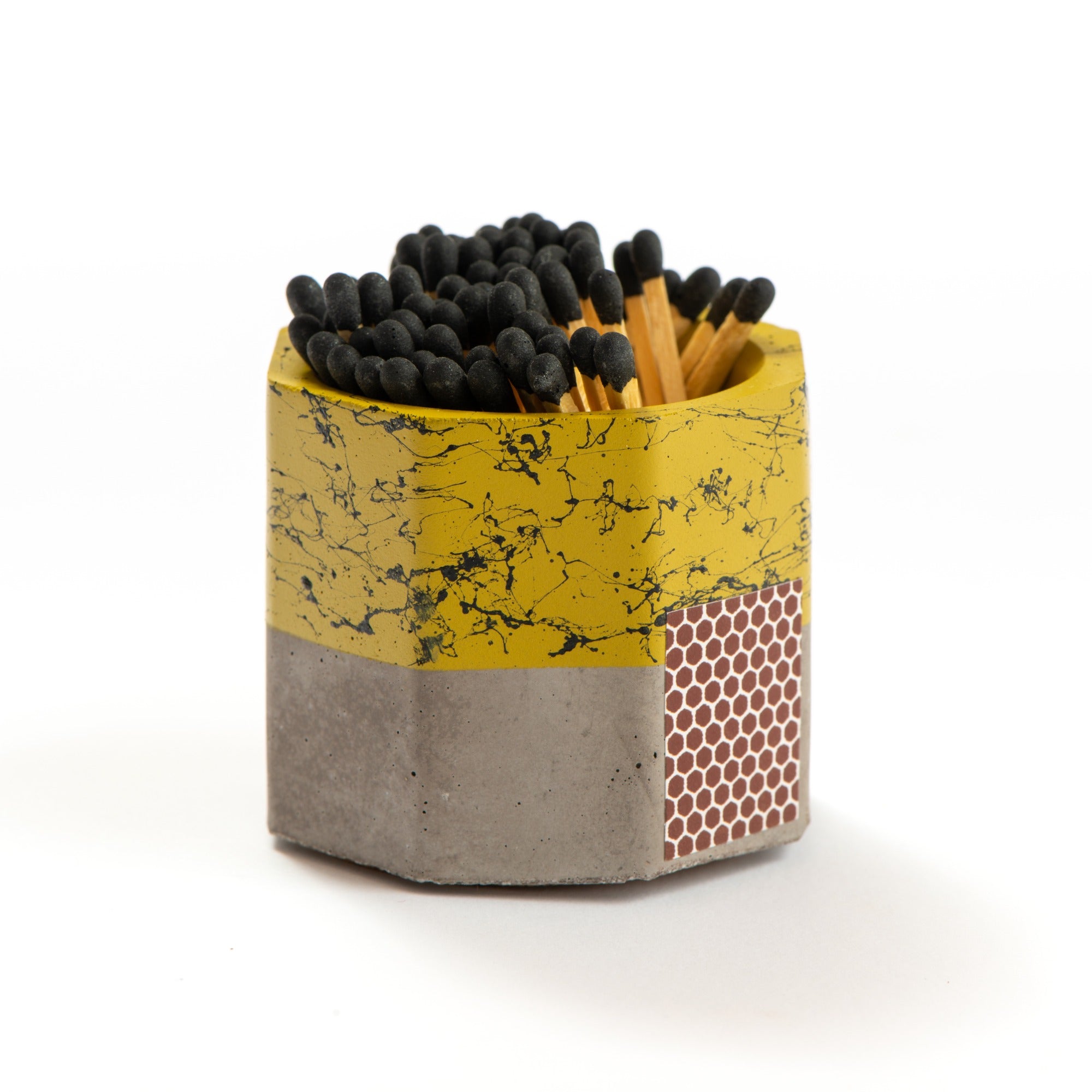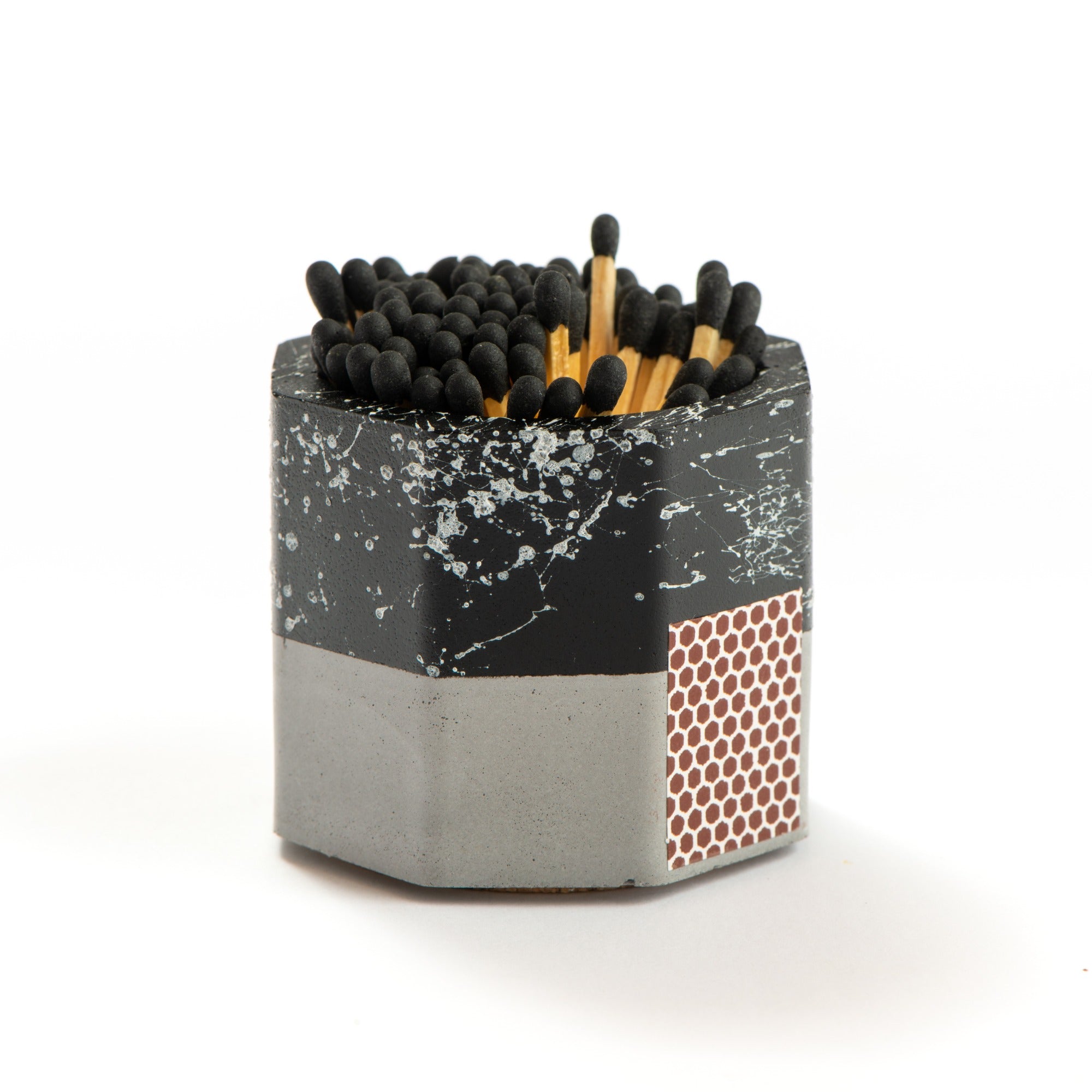 Stay prepared with the Tenn Prairie Graffiti Match Holder. Made of hand-poured concrete, it features a cork bottom and a striker pad for quick and easy lighting. Includes 70 matches.