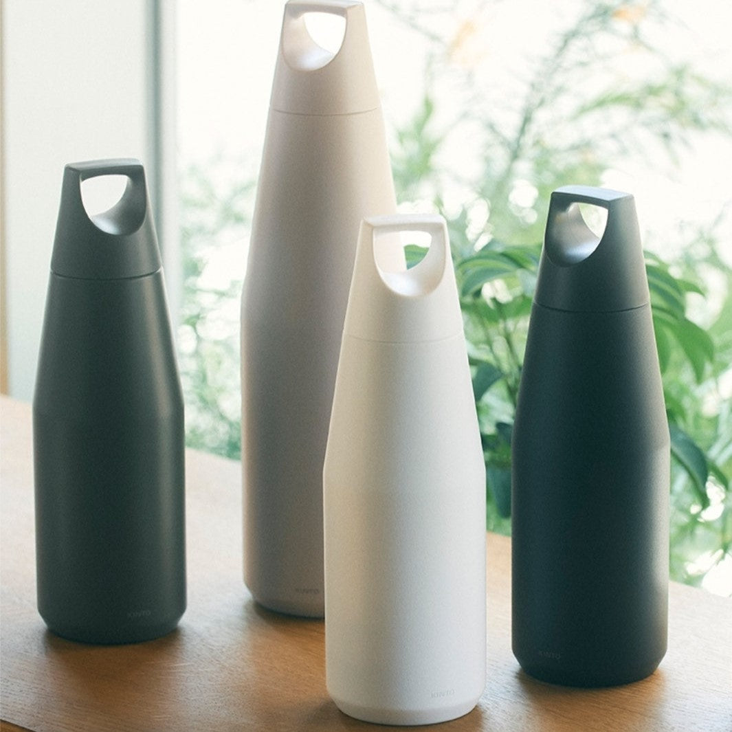 The KINTO TRAIL Tumbler is a 580ml double-walled, stainless steel bottle designed for outdoor adventures. It features excellent heat and cold retention, making it perfect for both hot and cold drinks. The smooth mouth and convenient handle make for comfortable drinking and carrying. Its durable 18-8 stainless steel construction and powder coat finish ensure long-term use and prevent rust and scratches. The lid smoothly opens to cover the mouth, keeping it clean while on-the-go. Use it as a carafe to share drinks with others.
