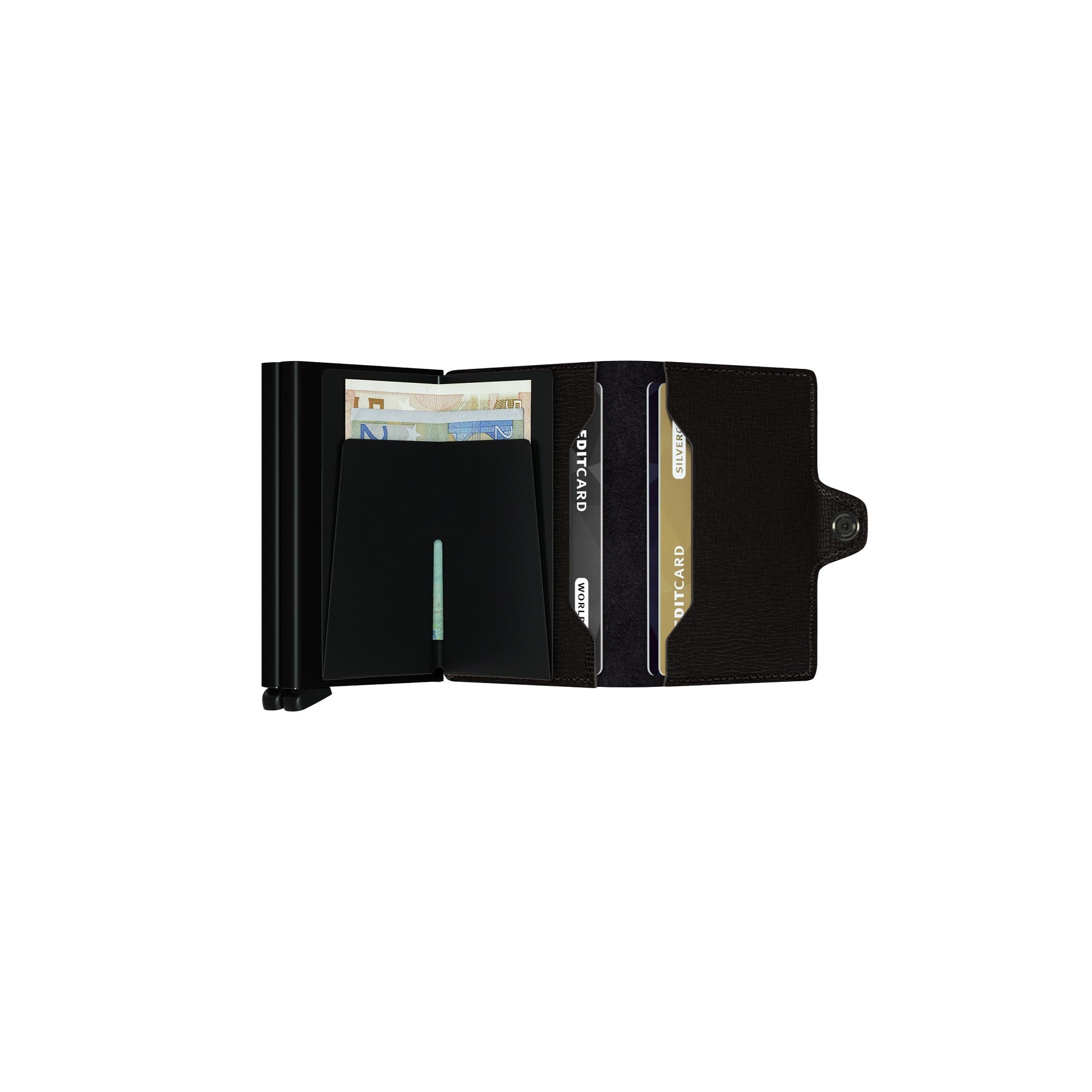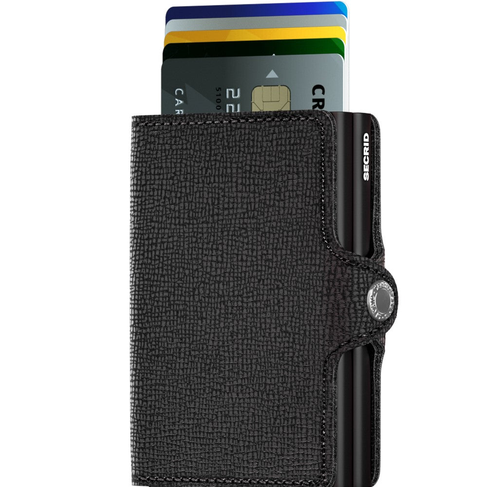 The sleek design of this wallet will surely make you stand out from the crowd, with its range of classic colors that embody sophistication and luxury. Don’t let bulky wallets ruin your ensemble or force you to carry unnecessary items – choose convenience and travel light with confidence. The easy-open lid ensures quick access to whatever you need when you need it. With refined stainless steel body, push buttons and RFID blocking technology, Secrid Twinswallets offer optimal safety measures for all your stored payment information. Trust in quality – trust in Secrid Twinwallet Crisple.